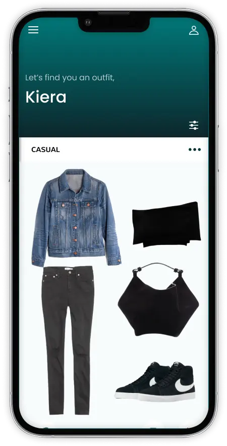 Pronti generates outfits that Kiera can scroll through. She can choose to: